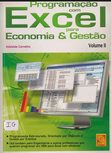 Programação com Excel para a Economia e Gestão, de Adelaide Carvalho, apresenta técnicas para utilizar o Microsoft Excel como ferramenta de apoio à análise, gestão e tomada de decisão em contextos económicos e empresariais. A obra aborda o uso avançado de folhas de cálculo, fórmulas, funções financeiras e estatísticas, criação de gráficos, análise de dados, tabelas dinâmicas e introdução à programação com VBA (Visual Basic for Applications) para automatização de tarefas. Destinada a estudantes e profissionais de economia, gestão e áreas afins, combina exemplos práticos com aplicações reais do mundo empresarial.
