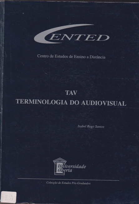 TAV – Terminologia do Audiovisual, de Isabel Rego Santos, apresenta e sistematiza os principais termos utilizados no campo audiovisual, explicando conceitos técnicos, artísticos e profissionais ligados à produção de imagem e som. A obra funciona como um guia de referência para compreender a linguagem própria do cinema, televisão, vídeo e multimédia, esclarecendo vocabulário relacionado a equipamentos, processos de produção, edição, difusão e estética audiovisual. Destina-se a estudantes, profissionais e interessados na área das artes e comunicação audiovisual.